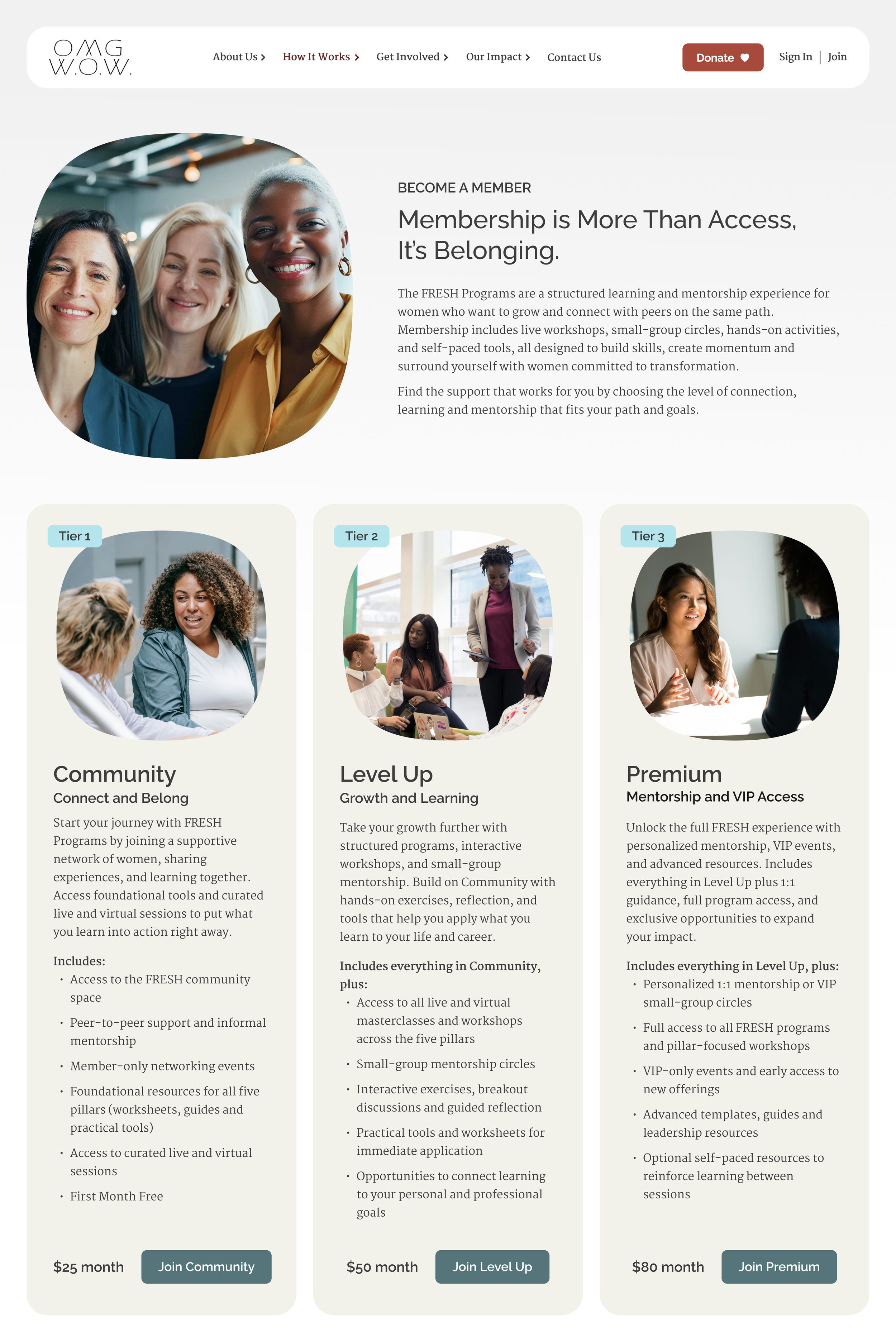 An educational experience that clearly explains membership tiers and helps women choose the level of support that fits their goals. Benefits are transparent and easy to compare, making it simple to join with confidence.
